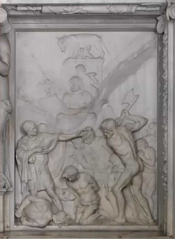 Again, this concept of the hereditary principle, was one of the corrupting influences of the period of kings, this concept that you “inherit” nobility, you “inherit” superiority, regardless of your actions in this world. Unfortunately, Junius Brutus, very quickly into his term as pro-consul, was challenged with how just of a leader he would be, and his two sons were found conspiring with the exiled Tarquin family plotting their return to the throne. And so, Brutus had to act as judge over his two sons in their treason and sentenced them to death. He had to also witness their executions which was considered the responsibility of the pro-consul. Some may think him a cold man for this, but there is no reason to think that such a decision did not greatly pain him, but rather that he treated his sons with no additional favor and judged their punishment for their crimes as he would have fairly done for anyone else.