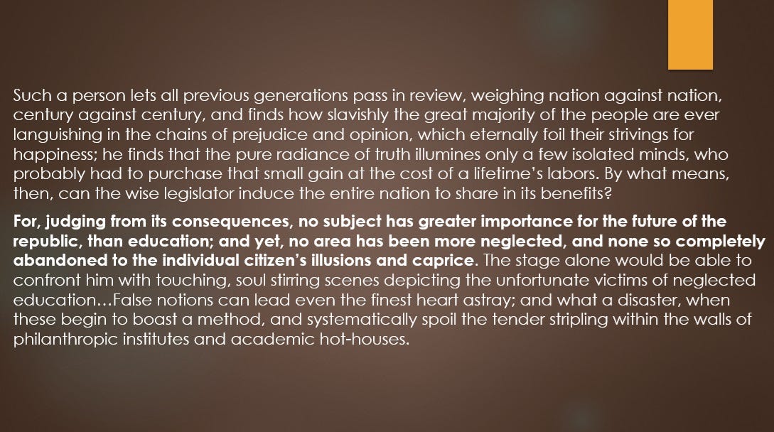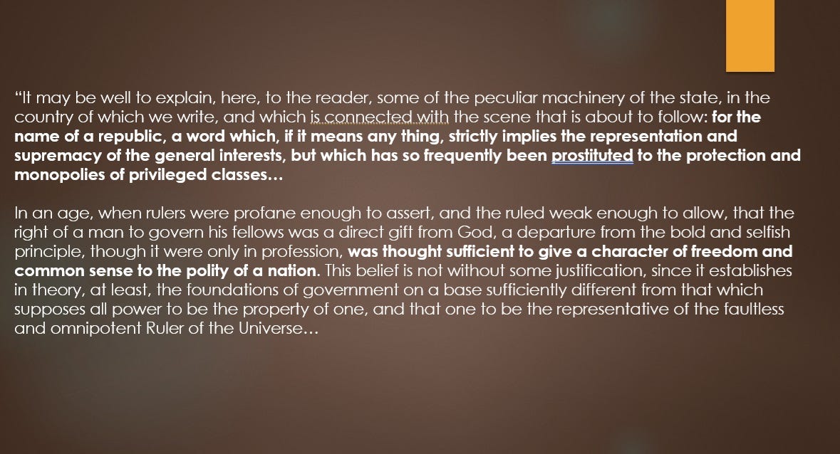 Before we go on I would just like to say that in this lecture in which we have been talking about aristocracy, this concept that you inherit nobility, you are part of the noble class and the fact that you are born into the noble class means that you will get all of these advantages and others will not and can never partake in those advantages in society, including leadership and responsibility because they were not born into the role. That’s the kind of aristocracy that Cooper is intervening on. Cooper was in support of a meritocratic system which is a society where people gain responsibility through their own merit. You prove that you are capable of having such responsibility and you qualify yourself for that. So aristocracy in its true definition, which sometimes the better philosophers will bring it up as such, means ruled by the best. This does not mean you can’t have any sort of inheritance in such a system but that it is really ultimately on the basis of merit that you advance in such a society.
