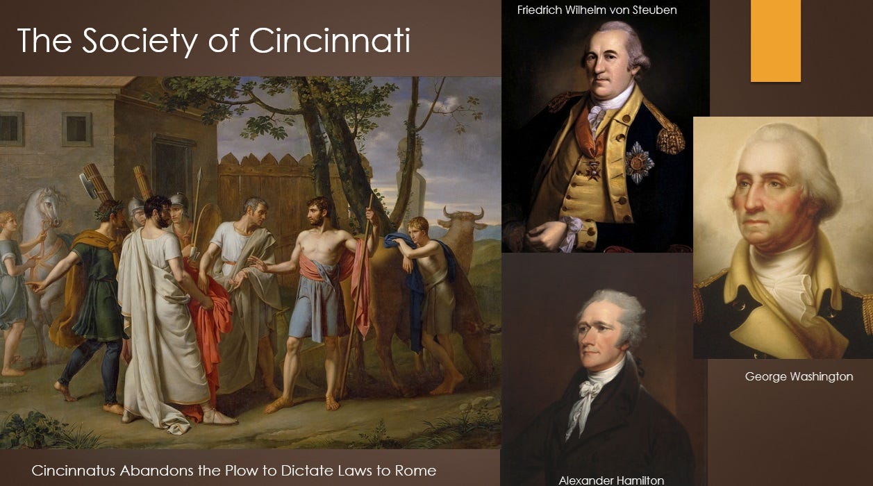This is very much the ideal that George Washington (above image to the right) and others were inspired by. Washington helped to found the Society of Cincinnati. The American Revolution was fought by farmers who were not professional soldiers and once the Revolution was won, they returned to their chosen professions, which were largely made up of farmers. It was considered a form of corruption to have a permanent professional force of soldiers, and it was thought important that during times of peace people had another raison d’être.