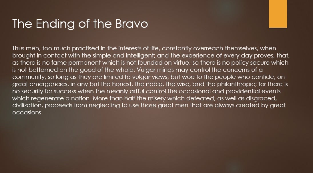 At the very beginning of “The Bravo,” Cooper makes some of his thoughts known in terms of his intention for writing this: