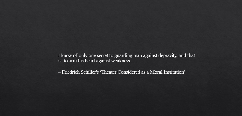 Schiller said in a wonderful essay he wrote Theater Considered as a Moral Institution: