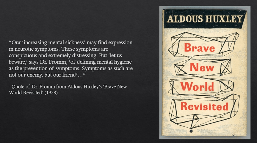 This is Aldous Huxley quoting Dr. Fromm, a member of the Frankfurt School, again just showcasing how this idea of schizophrenia was very much at the core of the Counter-Culture Movement:
