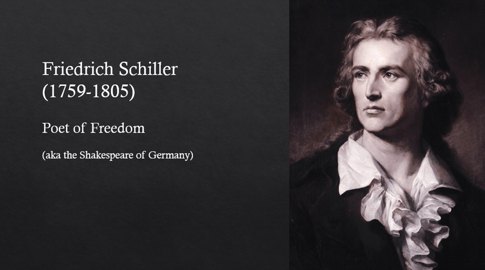 One person that we have largely lost from our awareness in the Arts is Friedrich Schiller, who is pretty much the Shakespeare of Germany.
