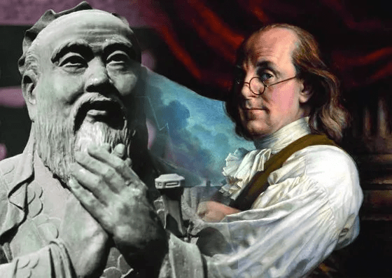 Even though Franklin didn’t appear to have any direct contact with the Chinese during this period (who were busy fending off the British Empire’s lusting dogs of the East India Company who were preparing a new phase of Asiatic expansion), Chinese thought did figure prominently in the thinking of Ben Franklin and Thomas Paine. Franklin had published many writings on Confucius from 1737-1757, which shaped many points of wisdom in the Poor Richards Almanac. Writing to a friend in 1747, Franklin stated “Confucius was my example. I followed Confucius”. As Professor David Wang points out, many of his insights into civil administration and law derived from his studies of China.
