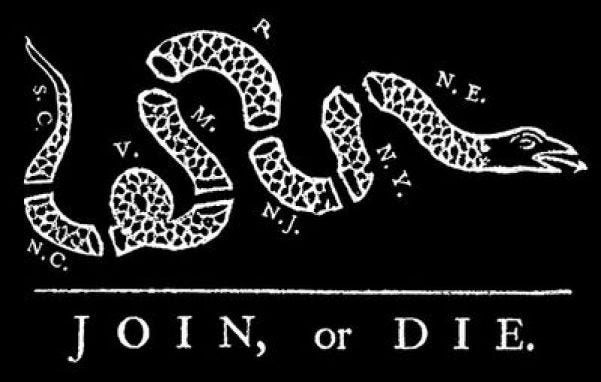 Franklin had already fought to unite the colonies for over twenty years beginning with his 1754 Plan of Union at the outset of the French-Indian War adopted by the Albany Congress, but rejected by the individual colonies who were always kept divided amongst themselves. Franklin’s “Join or Die” cartoon had its origins not in 1776, but actually during the battle of 1754 and it was an open secret that the British Elite of the 18th century collaborated closely with French oligarchical families to keep the troublesome colonialists subjugated, and underdeveloped as part of the “balance of power” game of empire.