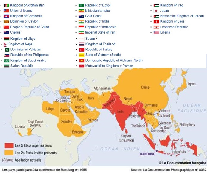 The Bandung Conference held in April 1955 was the first large-scale Asian–African Conference in history, its five organisers were Indonesia, India, Sri Lanka (formerly the British colony Ceylon), Myanmar (formerly the British colony Burma), and Pakistan (all fresh out of British and Dutch colonialism). The conference took place over six days and was held in Bandung, West Java, Indonesia. 29 countries participated, representing a total population of 1.5 billion people, 54% of the world’s population at the time.