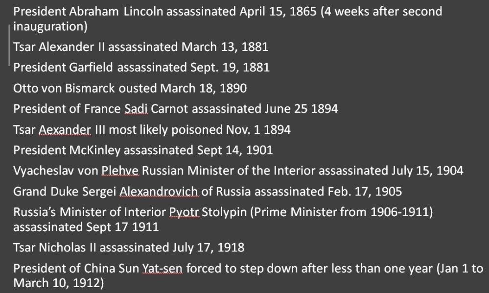 This list is by no means complete, there are many more names that were assassinated or ousted from their positions in this purge of “American System” supporters.